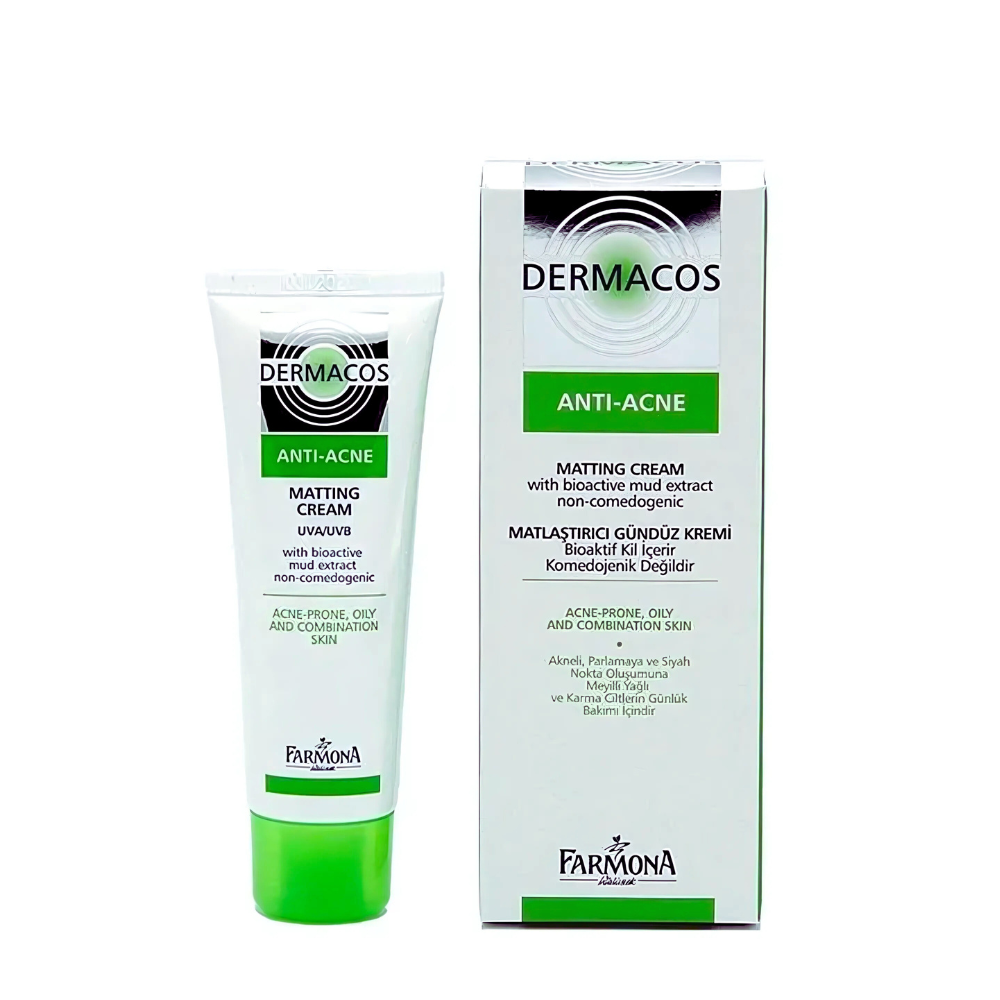 Sản phẩm kem dưỡng Dermacos Anti-Acne Matting Cream là dòng mỹ phẩm chăm sóc da trước sự xâm nhập của các vi khuẩn, bụi và tác hại của tia cực tím UVA/UVB. Đặc biệt, kem dưỡng Dermacos Anti-Acne Matting Cream còn hạn chế và điều hòa hoạt động của các tuyến bã nhờn, giảm tình trạng bóng nhờn, ngăn ngừa hình thành mụn mới và làm lành các tổn thương.
