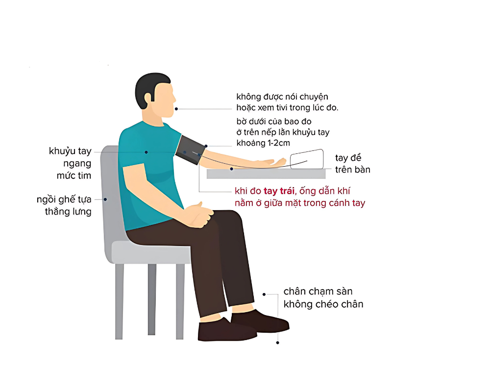 Lưu ý: Để kết quả đo được chính xác nhất, bạn cần chú ý một số vấn đề trước khi đo như: Nghỉ ngơi ở nơi yên tĩnh ít nhất 5 – 10 phút trước khi đo và không sử dụng các chất kích thích như rượu, cà phê, thuốc lá trước khi đo huyết áp 2 giờ.