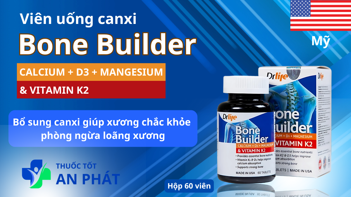 Bone Builder Drlife bổ sung canxi và vitamin cần thiết cho xương, giúp xương chắc khỏe, phòng chống loãng xương và các bệnh do thiếu hụt canxi.